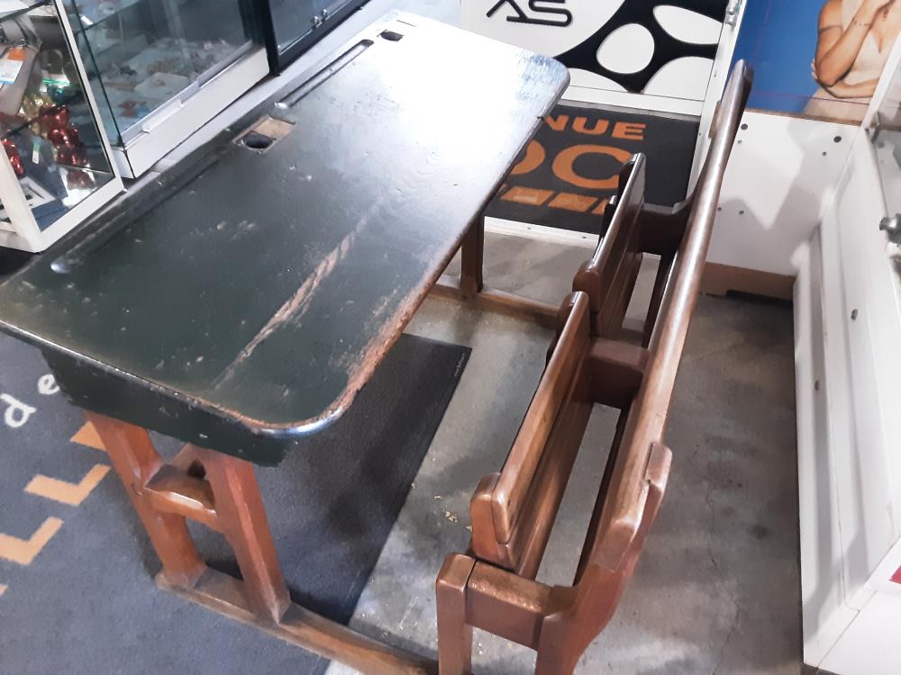 BUREAU D'ÉCOLIER EN BOIS 2 PLACES AVEC ASSISES RELEVABLES