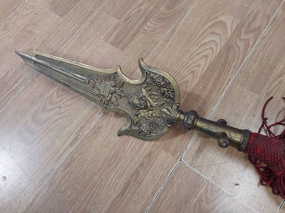 LANCE ANCIENNE EMBOUT METAL MANCHE EN BOIS LONG 2M35
