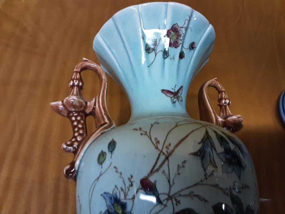 PAIRE DE VASES AVEC ANSES DÉCOR FLEURS ET PAPILLONS H.30CM