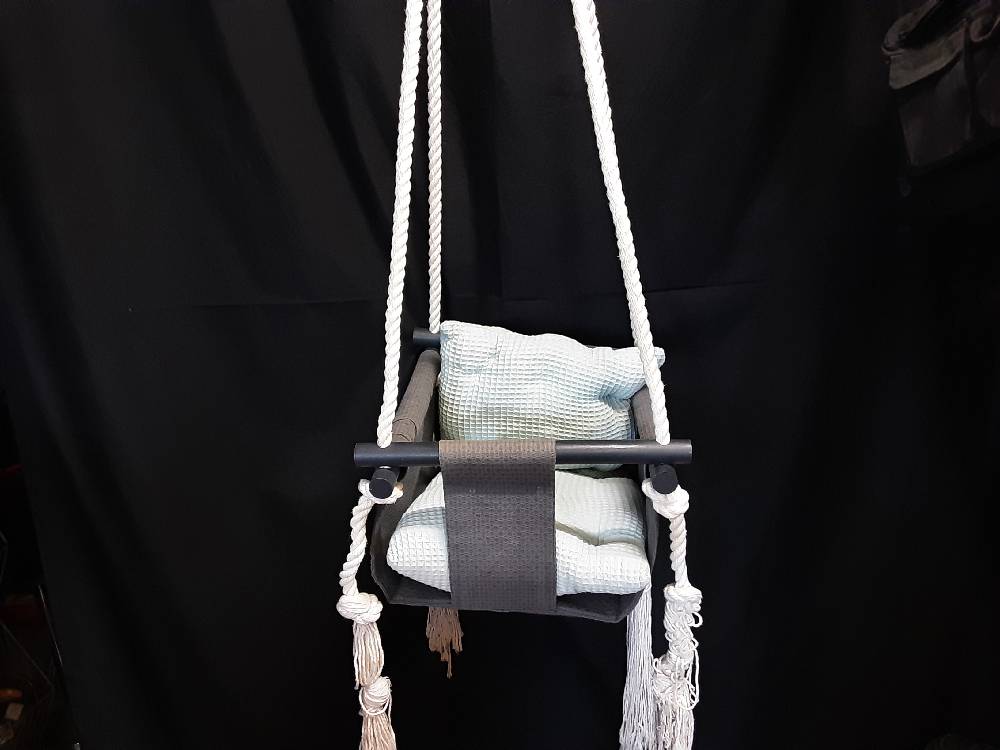 BALANÇOIRE BÉBÉ AVEC COUSSIN COLORIS GRIS ET BLEU