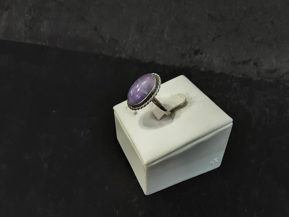 BAGUE ARGENT PIERRE OVALE VIOLETTE