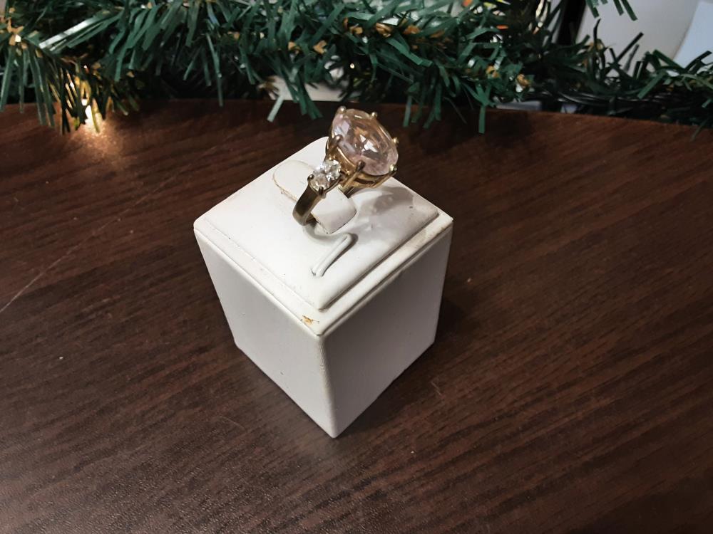 BAGUE DOREE STRASS PIERRE ROSE FANTAISIE