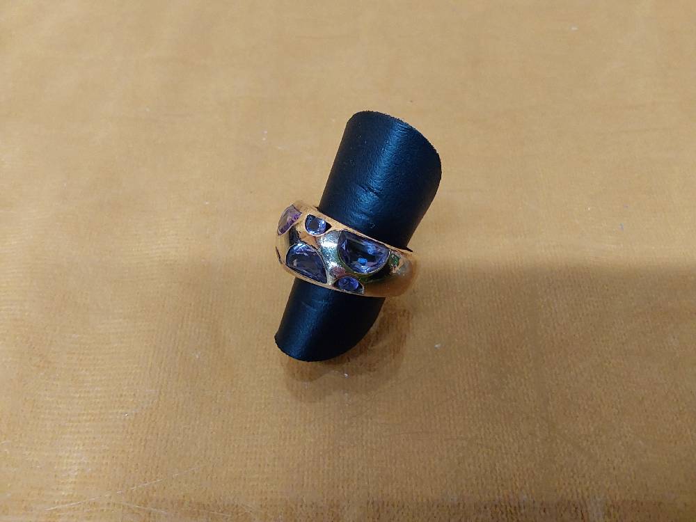 BAGUE PLAQUE OR AVEC STRASS VIOLET