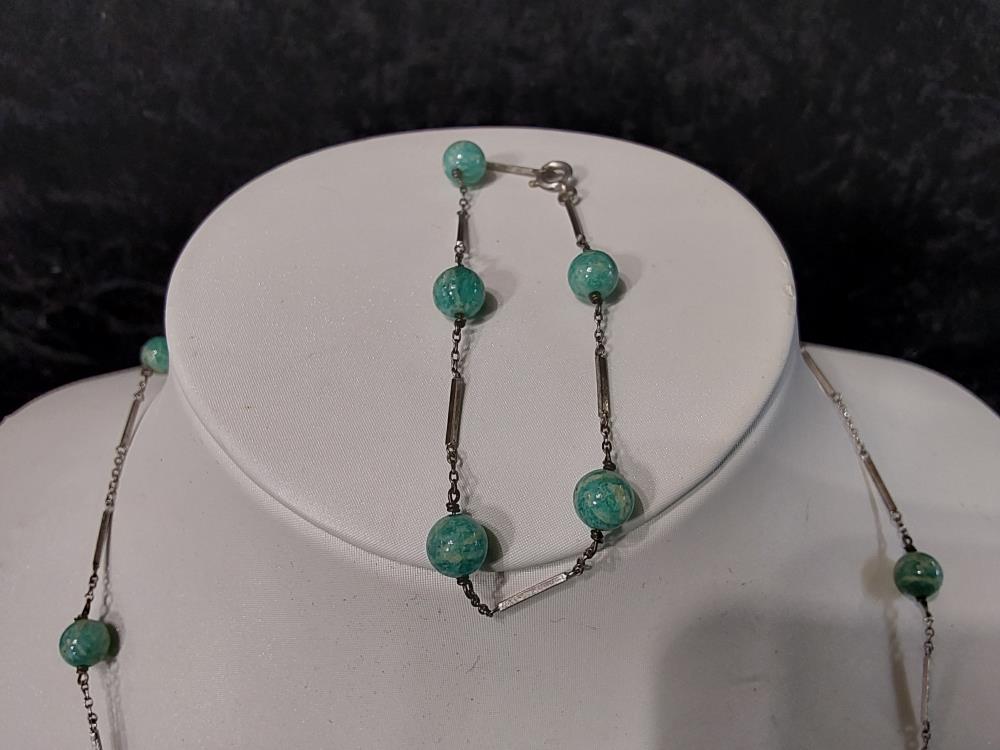 COLLIER + BRACELET EN ARGENT - PERLES COLORIS BLEU-VERT