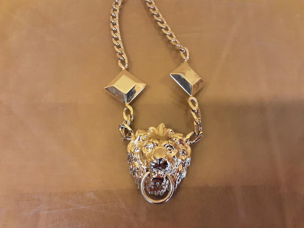 COLLIER CHAINE TETE DE LION + BOUCLES D'OREILLES TETE DE LIONS
