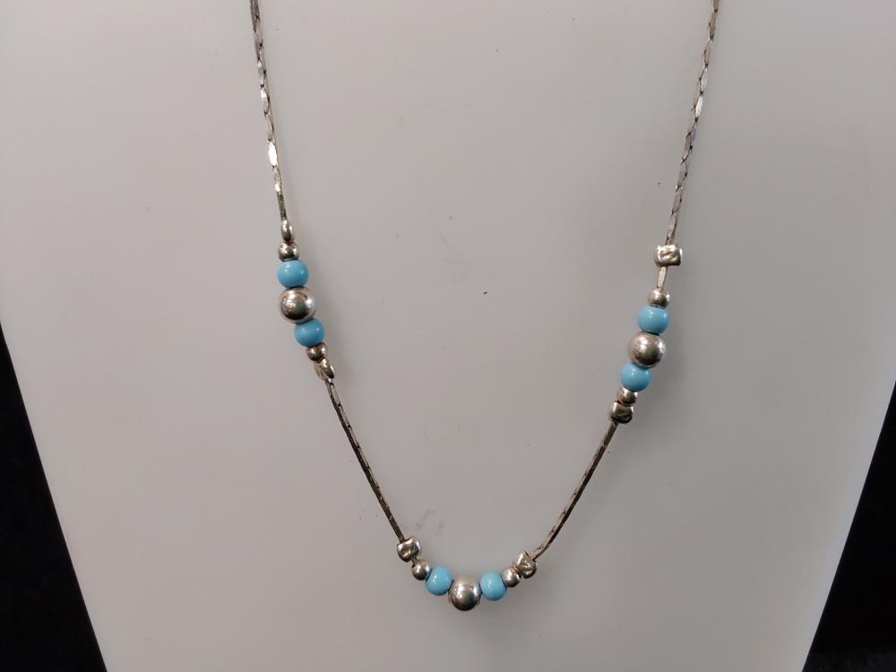 COLLIER EN ARGENT PERLES COLORIS TURQUOISE