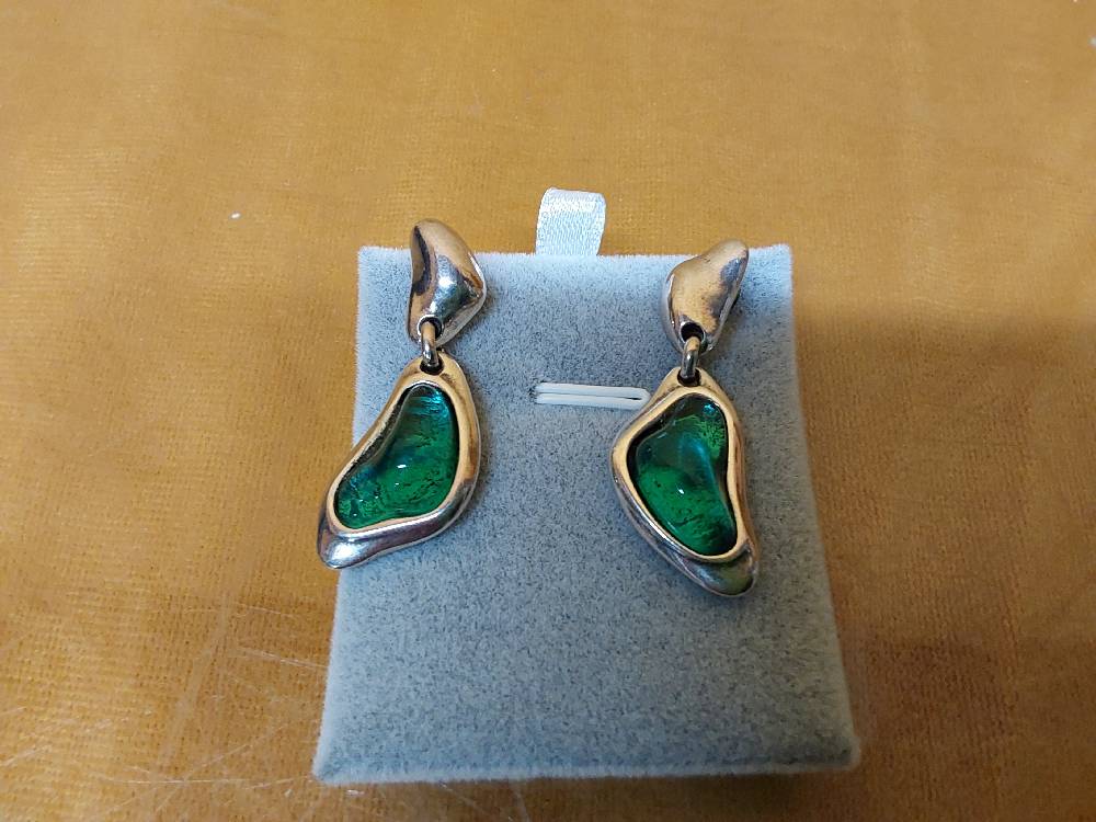 PAIRE DE BOUCLE D'OREILLES ARGENT PIERRE VERTE