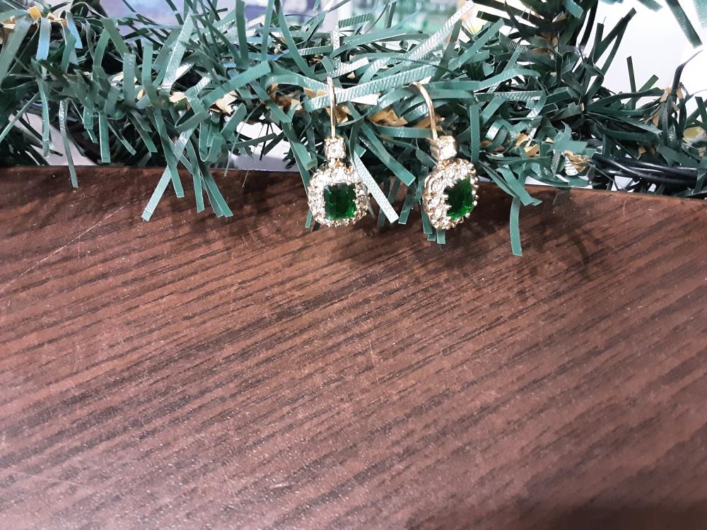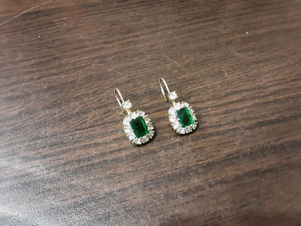 PAIRE DE BOUCLES D4OREILLES STRASS PIERRE VERTE