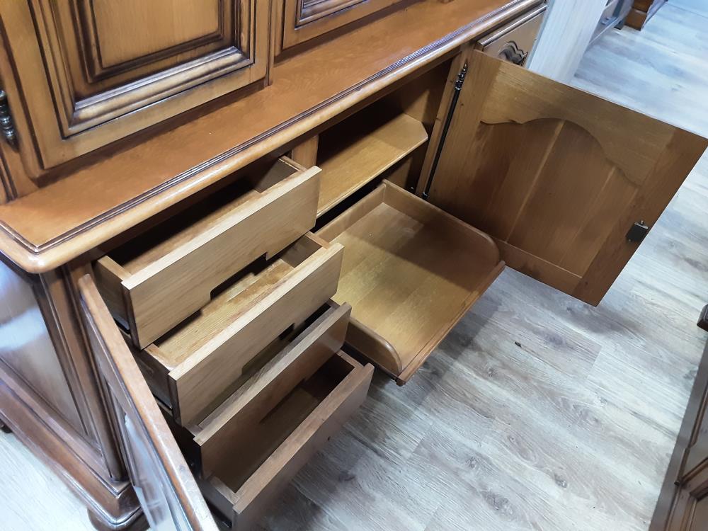 BUFFET 2 CORPS 6 PORTES DONT 1 VITREE AVEC TABLETTE ET TIROIRS INTERIEUR