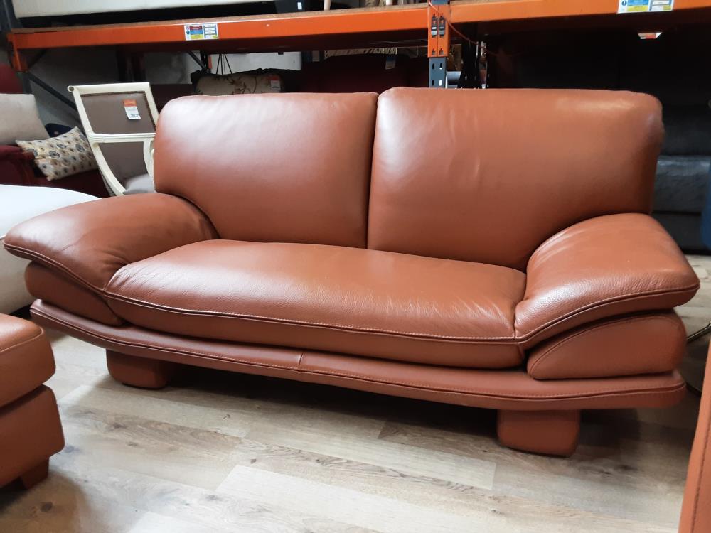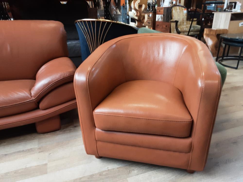 CANAPE 2PL + FAUTEUIL + POUF CUIR MARQUE DUVIVIER ROCHEBOBOIS COLORIS CARAMEL