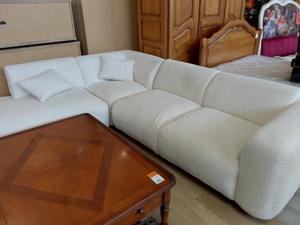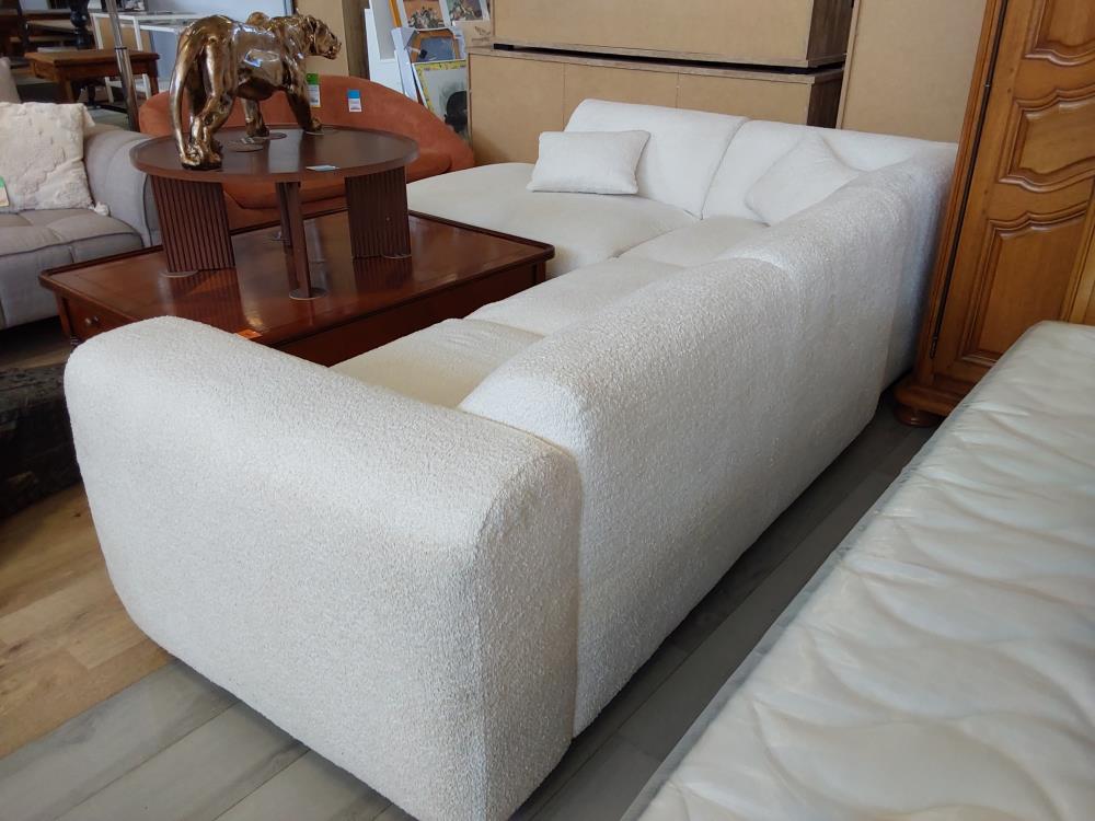 CANAPÉ ANGLE GAUCHE BOUCLETTE COLORIS BLANC - 3 COLIS (1175503/143889) 2ÈME CHOIX