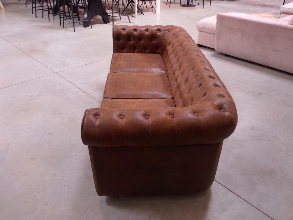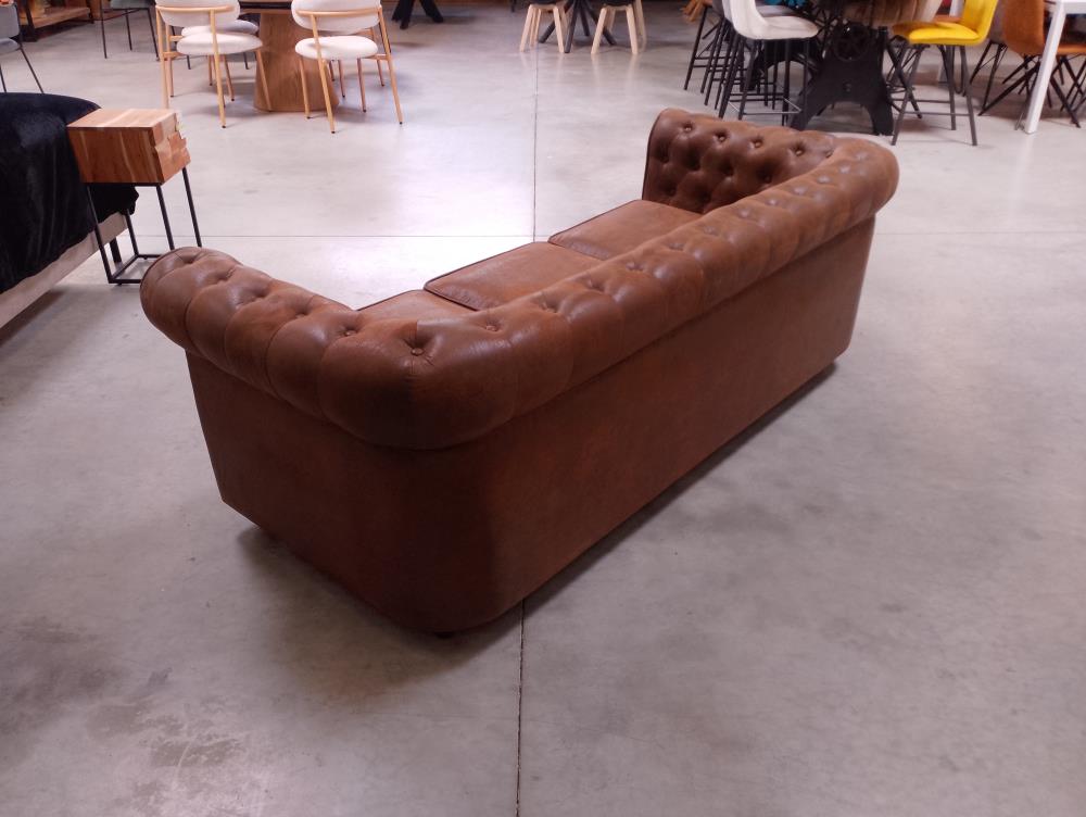 CANAPÉ CHESTERFIELD 3 PLACES MICROFIBRE ASPECT CUIR MARRON (1183221/1189758-68653) 2ÈME CHOIX