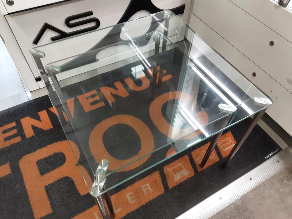 LOT DE 2 TABLES BASSES GIGOGNE PLATEAUX VERRE PIEDS CHROMES