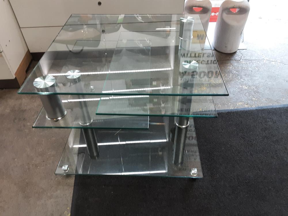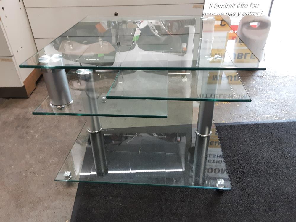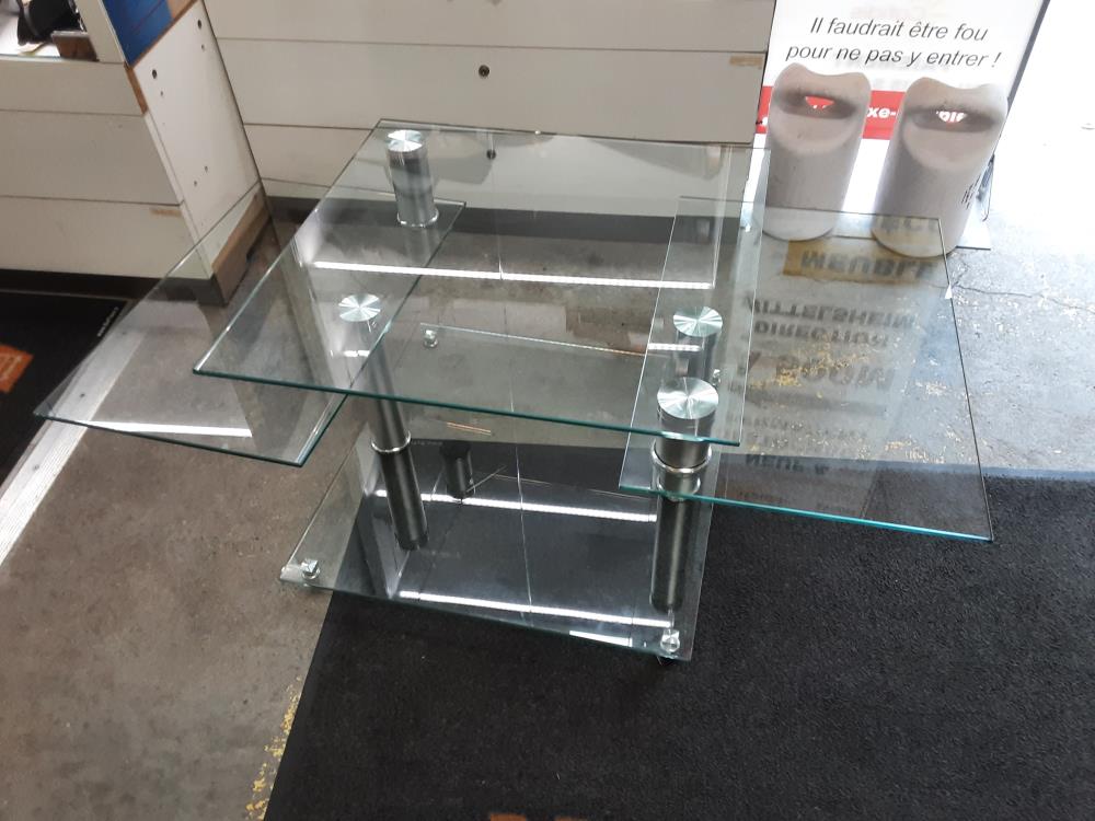 TABLE BASSE CAREE 4 PLATEAUX EXTENSIBLES EN VERRE LONG 115CM OUVERTE