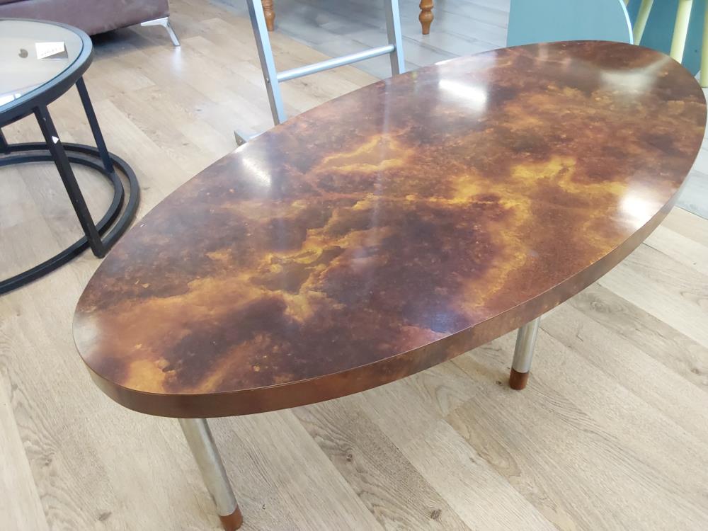 TABLE BASSE OVALE PLATEAU BRUN PIEDS METAL