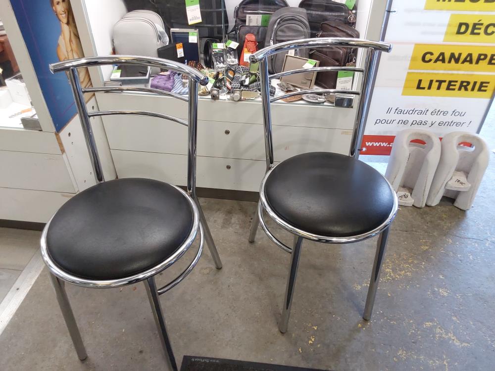 CHAISE ASSISE RONDE SIMILI CUI NOIR DOSSIER CHROME