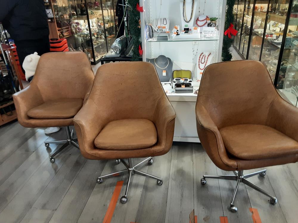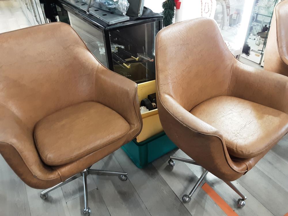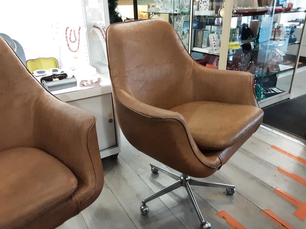 FAUTEUIL SIMILI CUIR BRUN SUR ROULETTES A RESTAURER