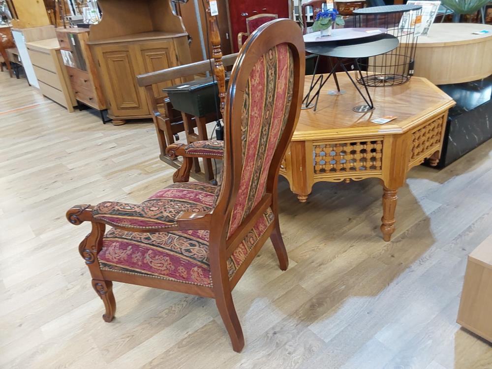 FAUTEUIL VOLTAIRE TISSUS VERT ET ROUGE A MOTIF