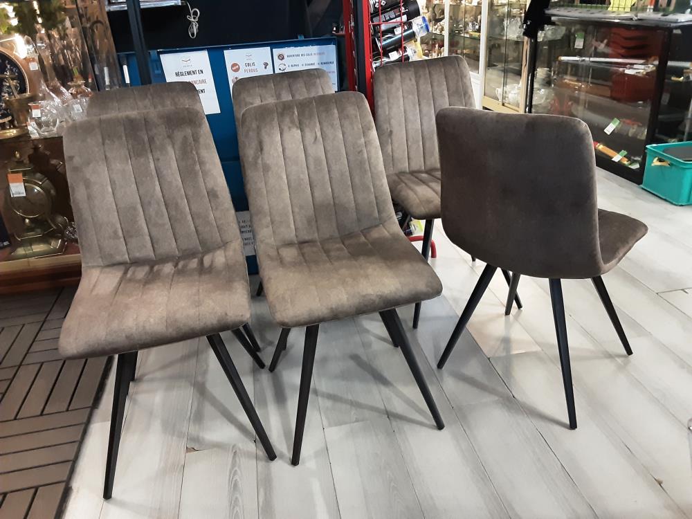LOT 6 CHAISES VELOURS TAUPE PIEDS METAL NOIR