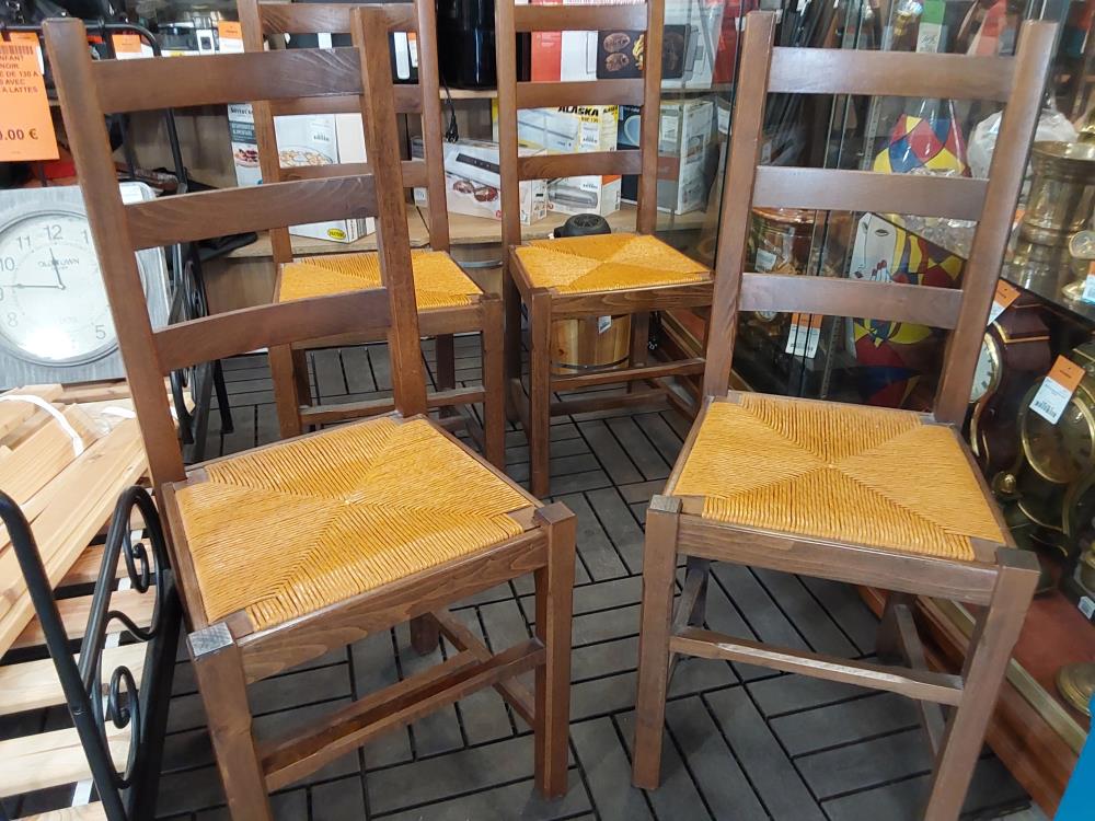 LOT DE 4 CHAISES BOIS FONCÉ ASSISE PAILLÉE