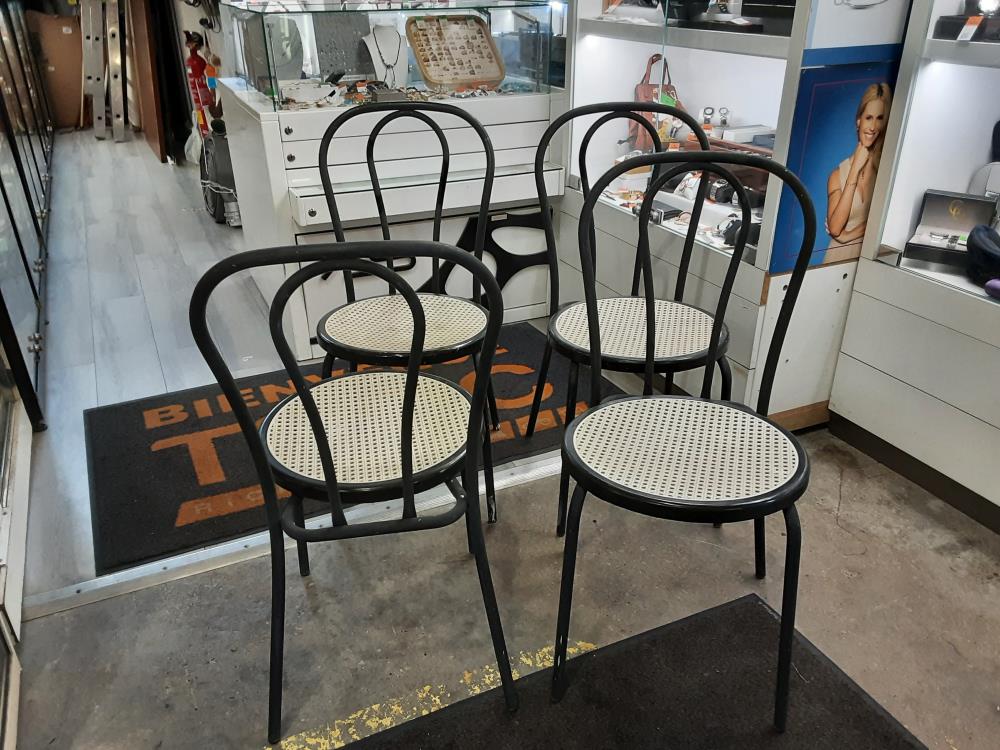 LOT DE 4 CHAISES DE CUISINE METAL NOIR ASSISES PVC CANNAGE