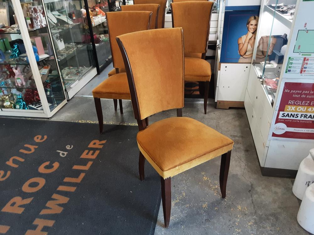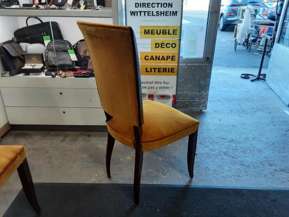LOT DE 6 CHAISES EN HETRE - TISSU MOUTARDE
