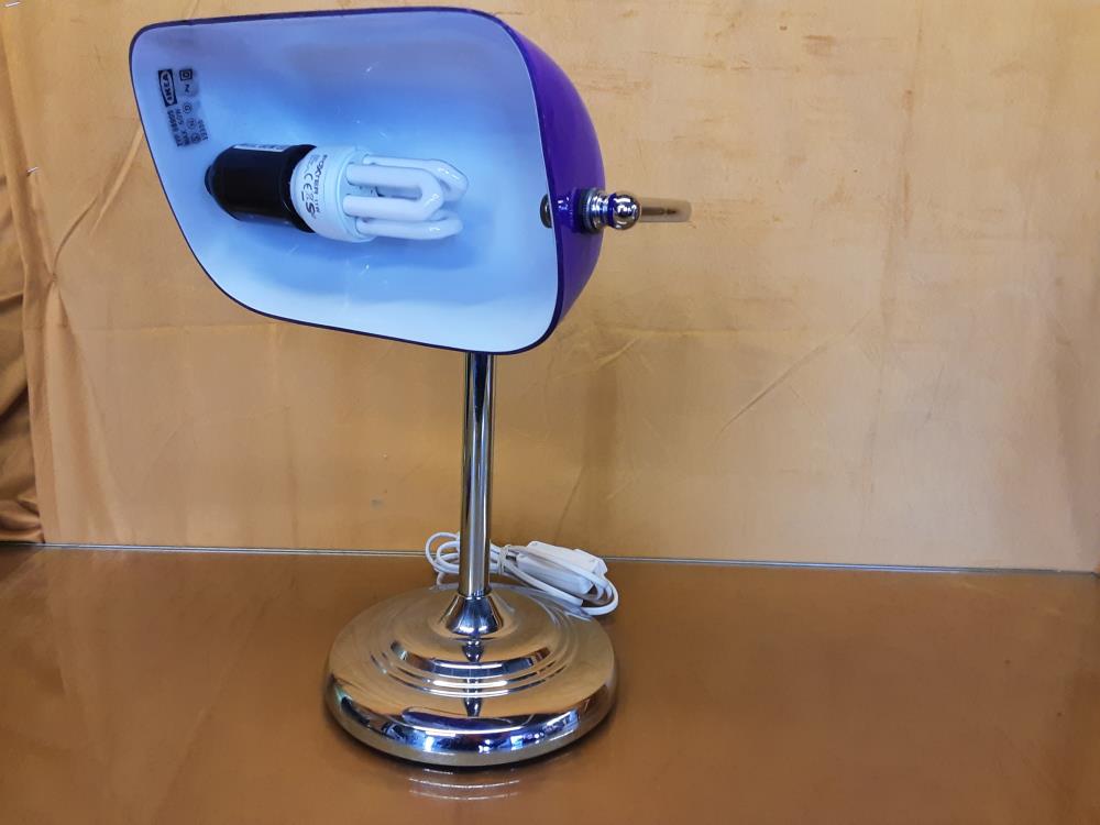LAMPE DE BUREAU BLEU ET PIED CHROME HAUTEUR 34 CM