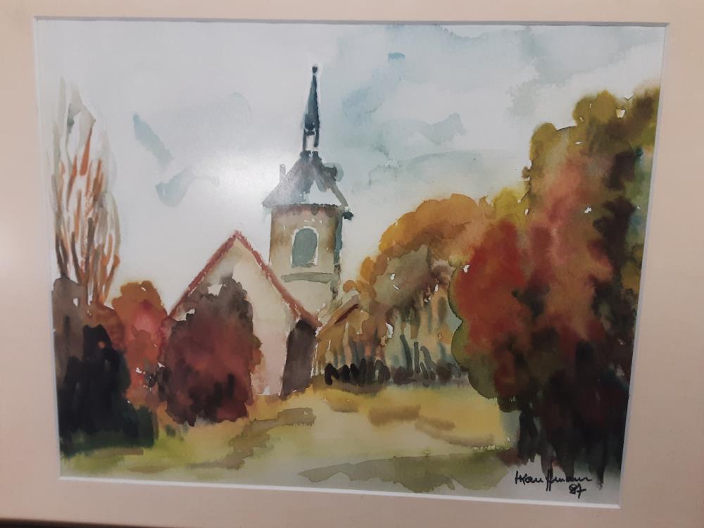 AQUARELLE EGLISE SIGNE KAUFFMANN