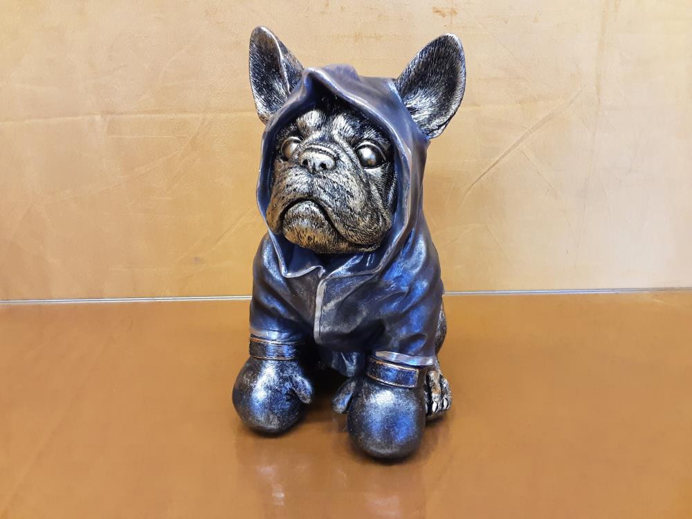 CHIEN BOULEDOGUE A CAPE ET GANTS DE BOX EN RESINE (SP-57)