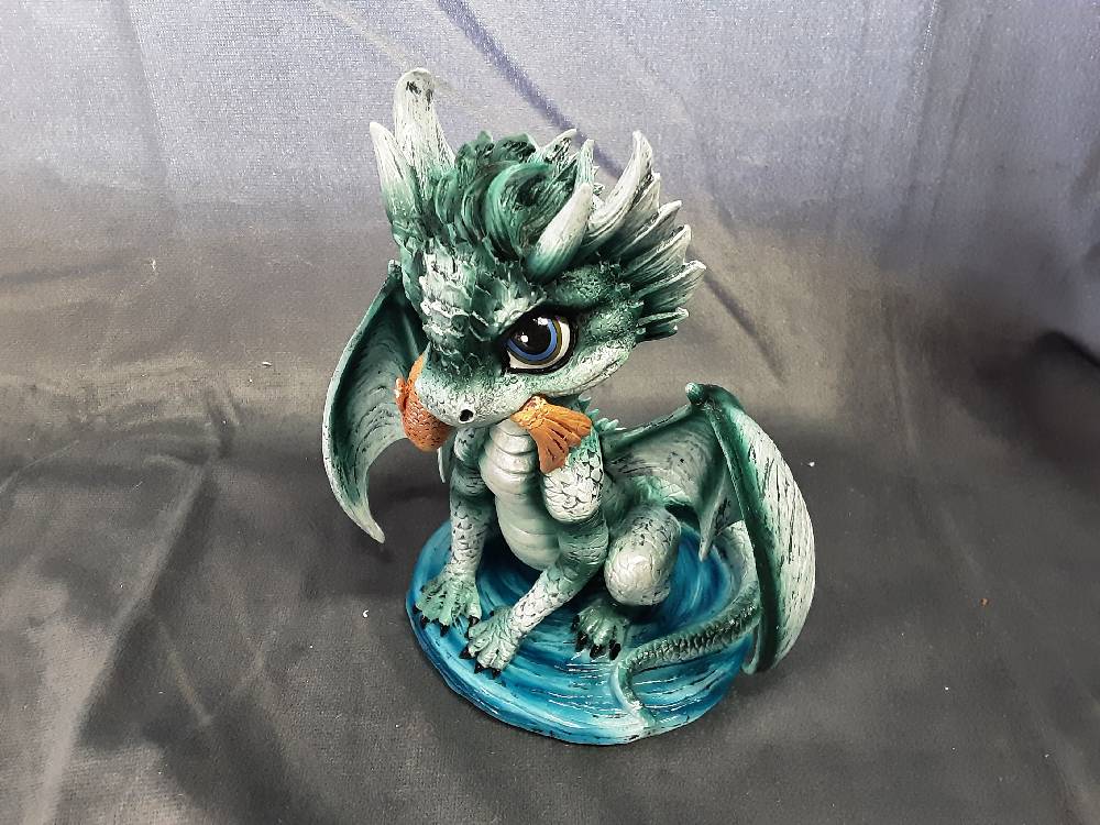 DRAGON VERT AVEC POISSON 12.9 X 14.5CM (ARD-009)