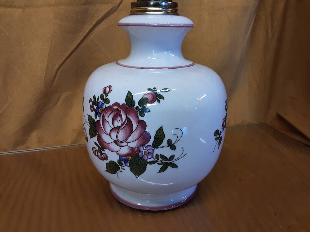 LAMPE A PETROLE AVC VERRE MOTIF FLEURS ROSES