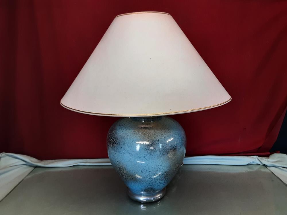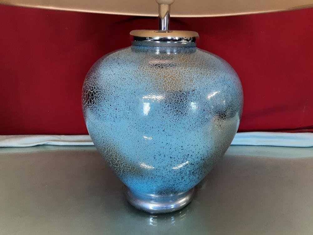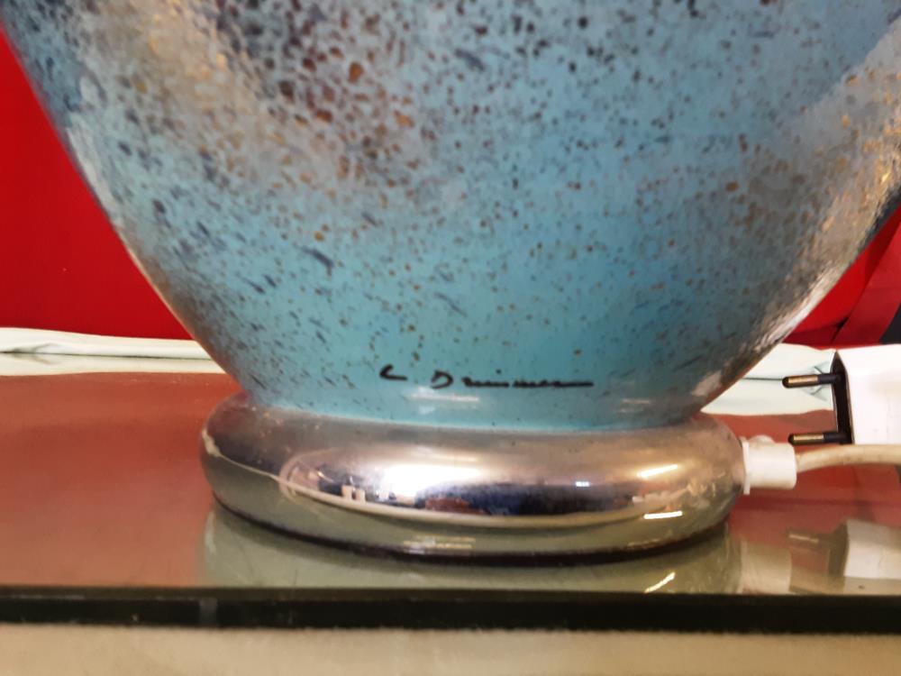 LAMPE A POSER PIED BLEU ARGENTÉ SIGNÉE DRIMMER - ABAT JOUR BEIGE H.62CM