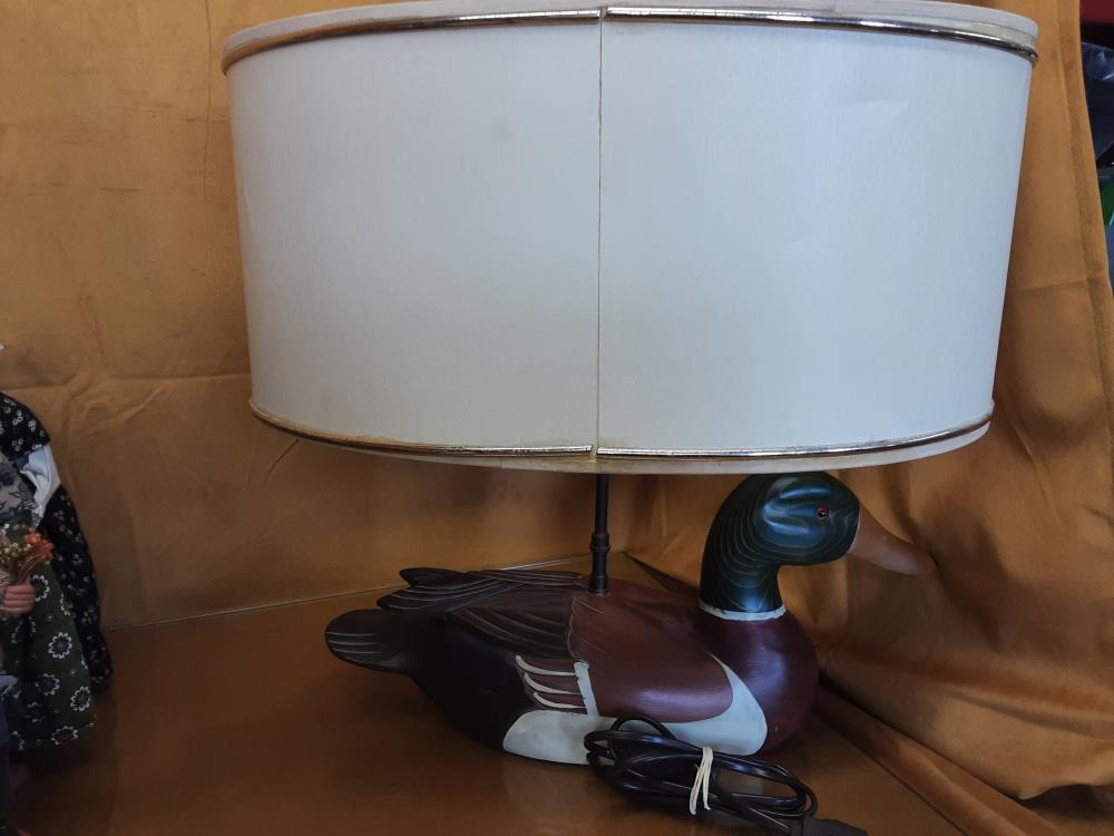 LAMPE CANARD EN BOIS ABAT JOUR CREME