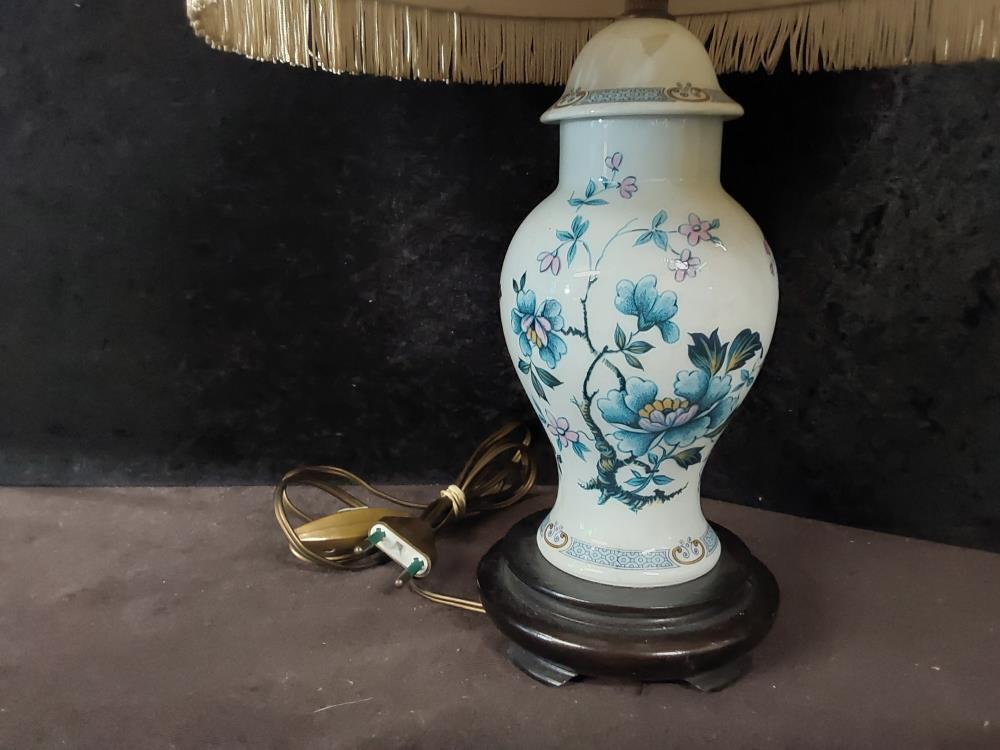 LAMPE DE CHEVET DECOR FLEURS ROSE ET BLEU