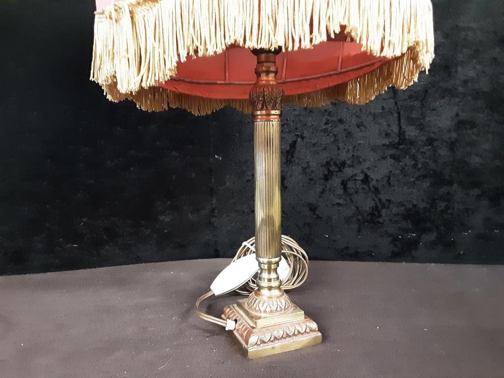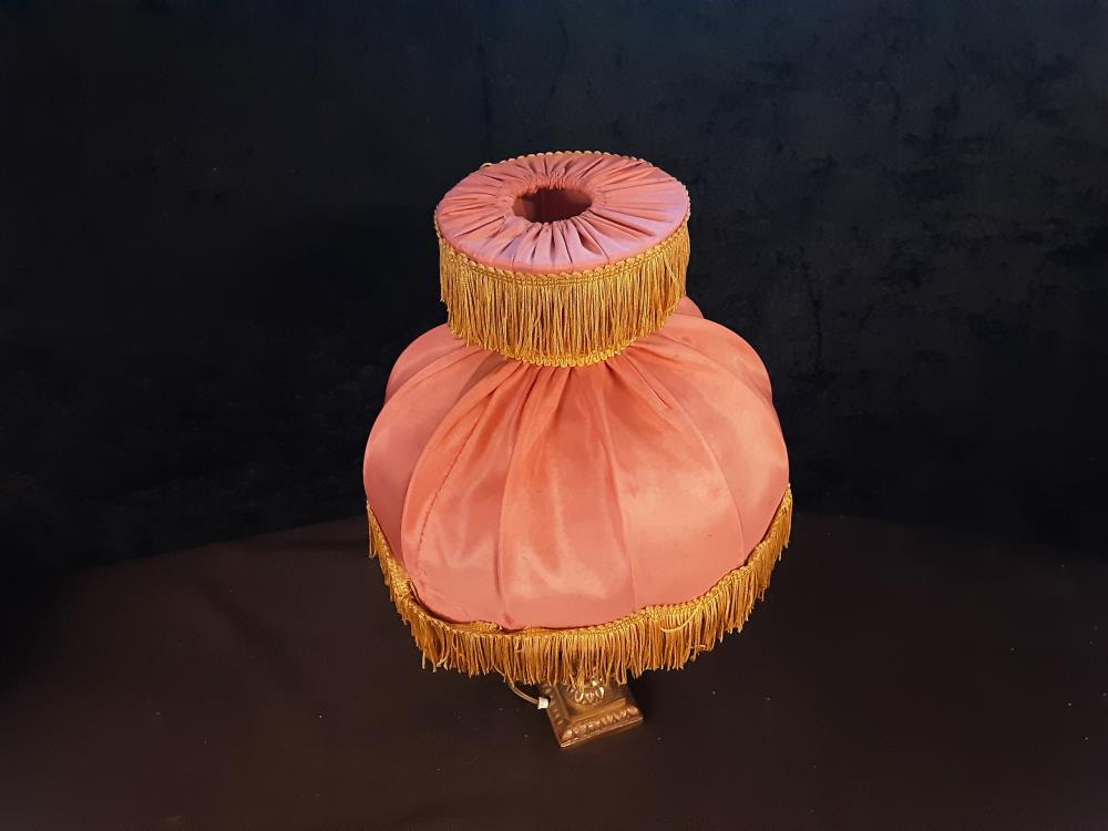 LAMPE DE CHEVET PIED BRONZE ABAT-JOUR ROSE