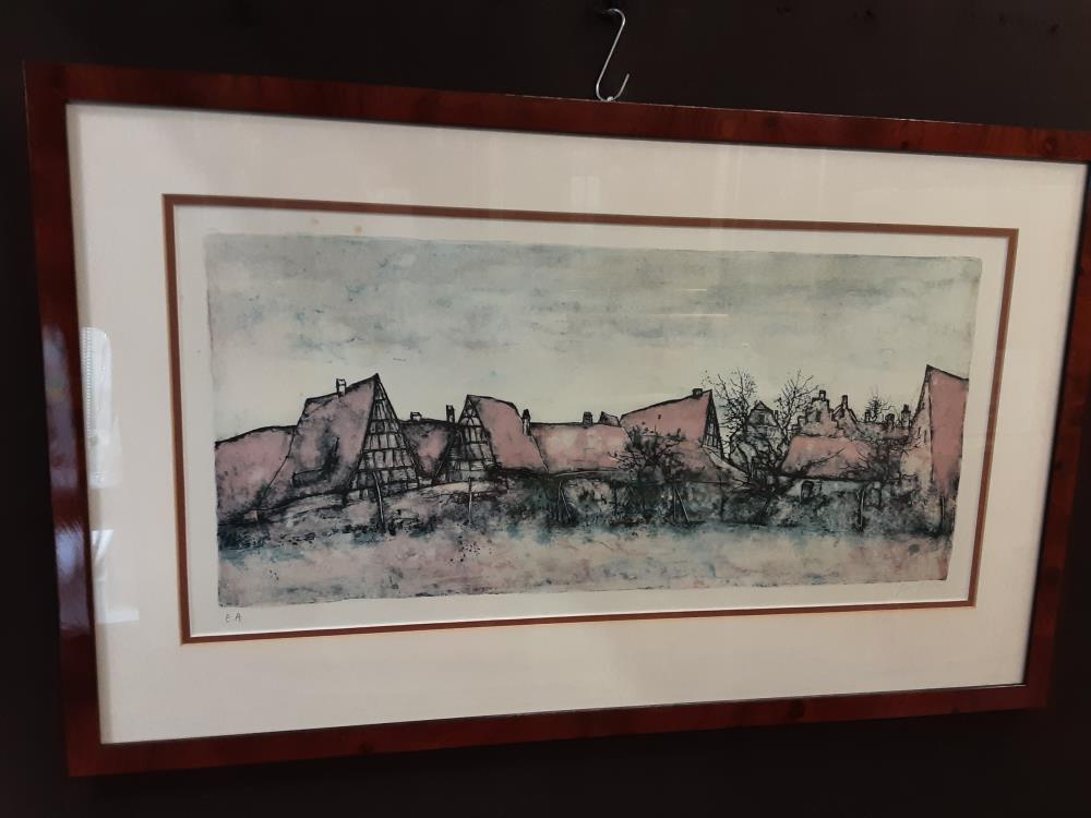 LITHOGRAPHIE SIGNÉE GANTNER - VILLAGE ALSACIEN 70X43CM