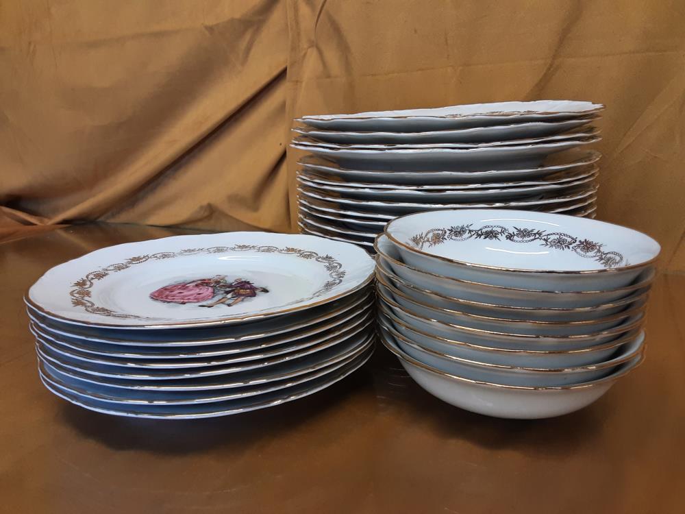 LOT DE 16 ASSIETTES GM + 8 DESSERTS + 8 COUPELLES COMPOTES LIMOGES DECOR MARQUISE