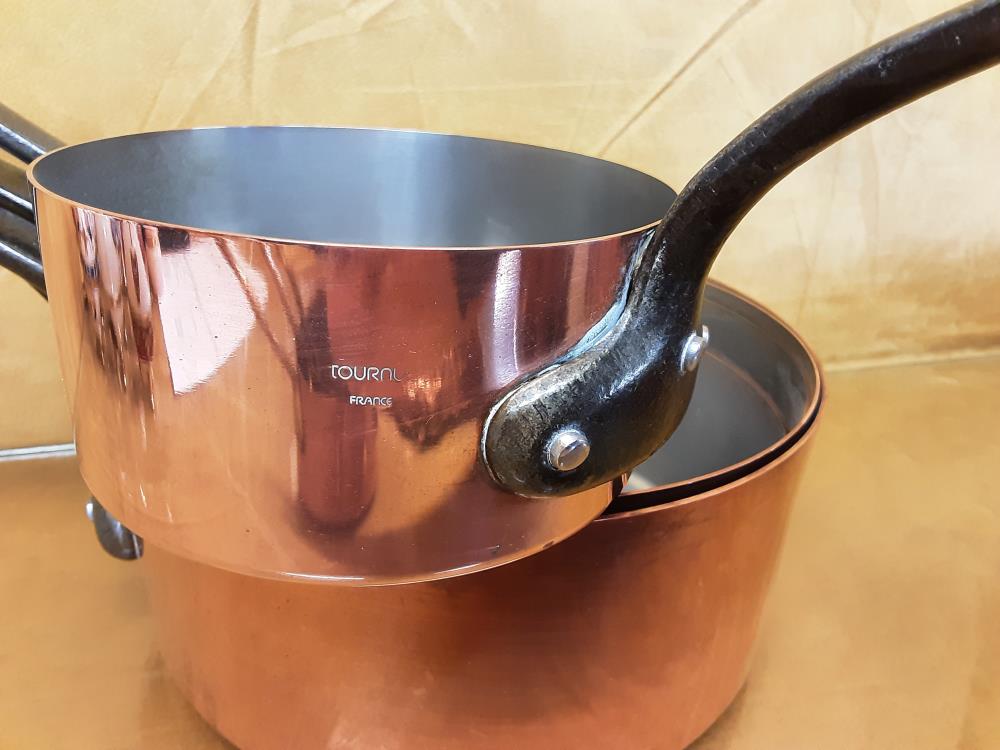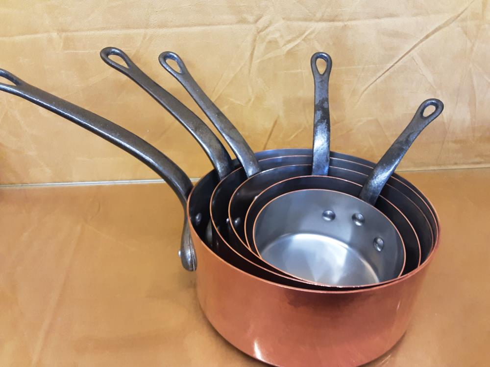 LOT DE 5 CASSEROLES CUIVRES SIGNEES TOURNUS FRANCE