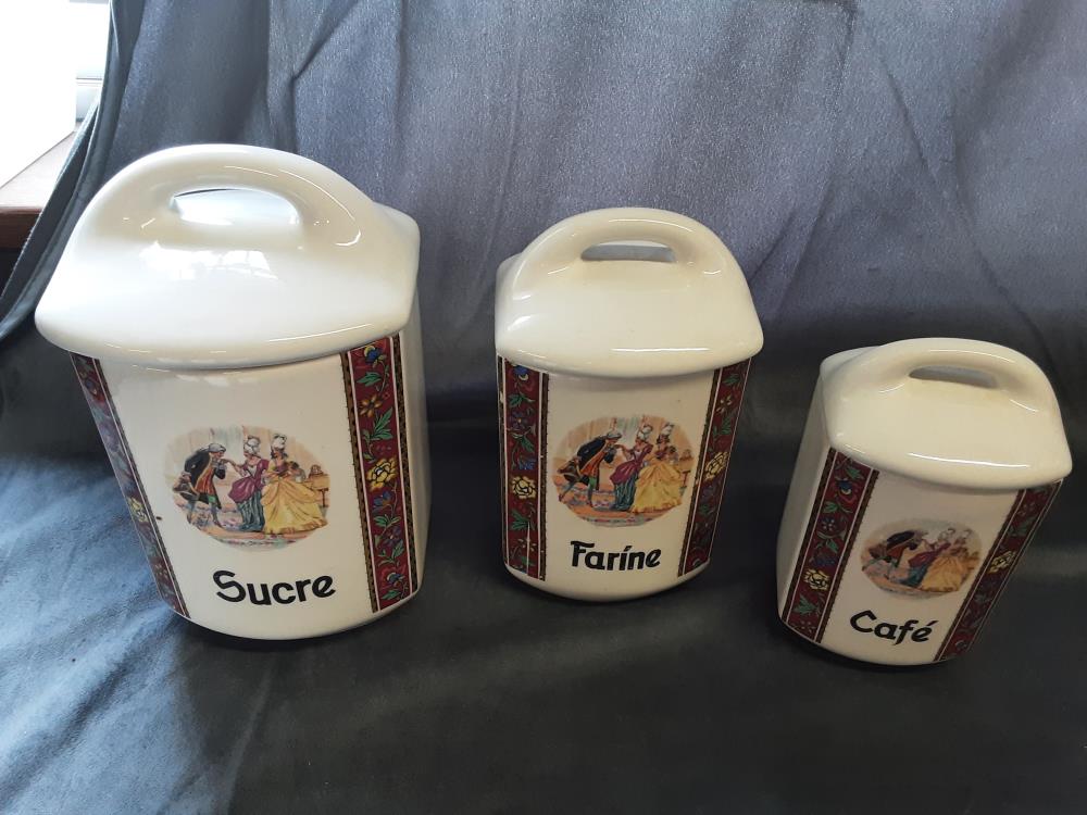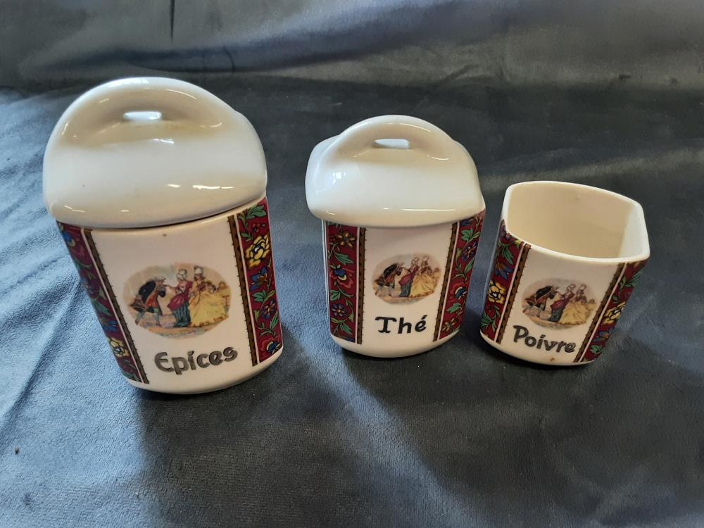 LOT DE 6 POTS EN PORCELAINE 1 COUVERCLE MANQUANT DECOR MARQUIS