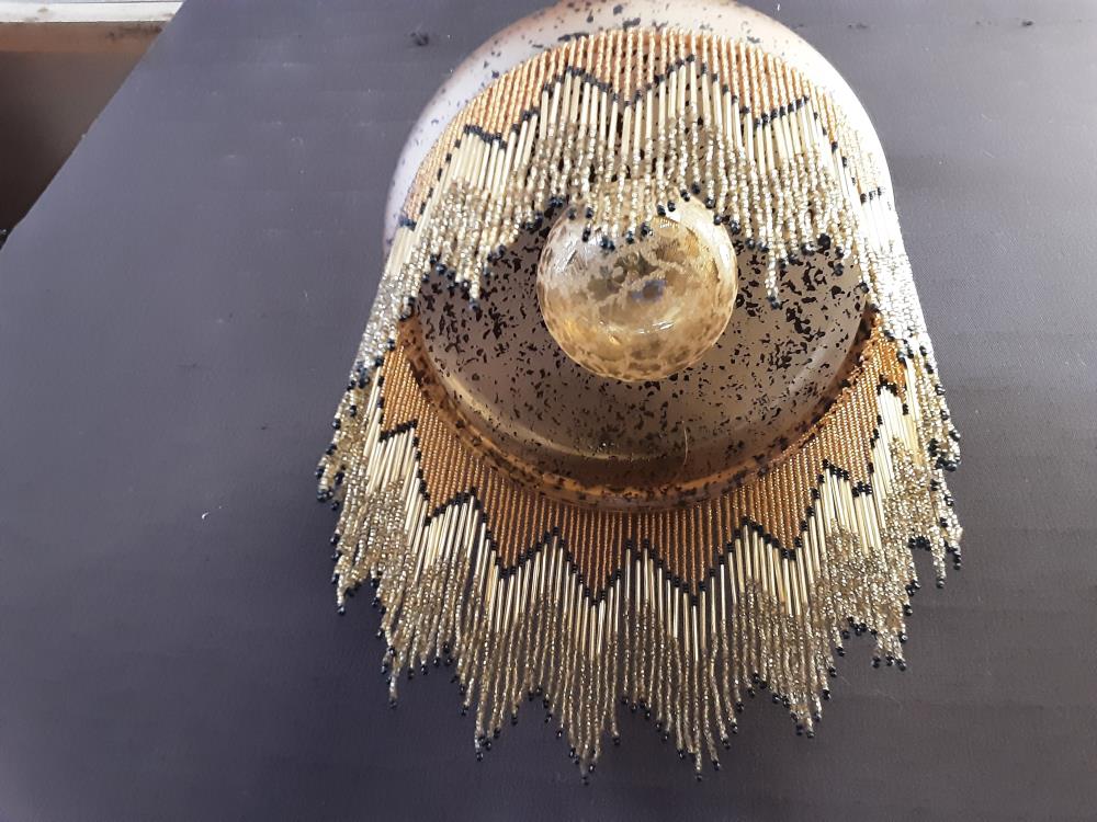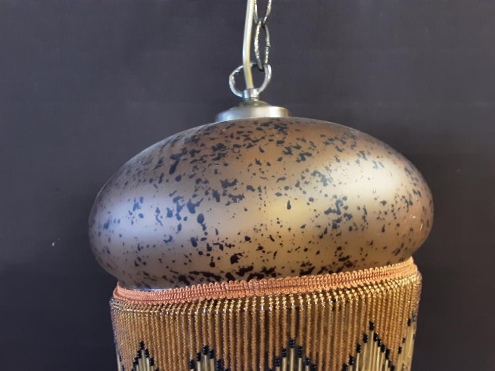 LUSTRE VERRE SOUFFLE A FRANGES ORANGE MOUCHETE NOIR DIAM. 26CM