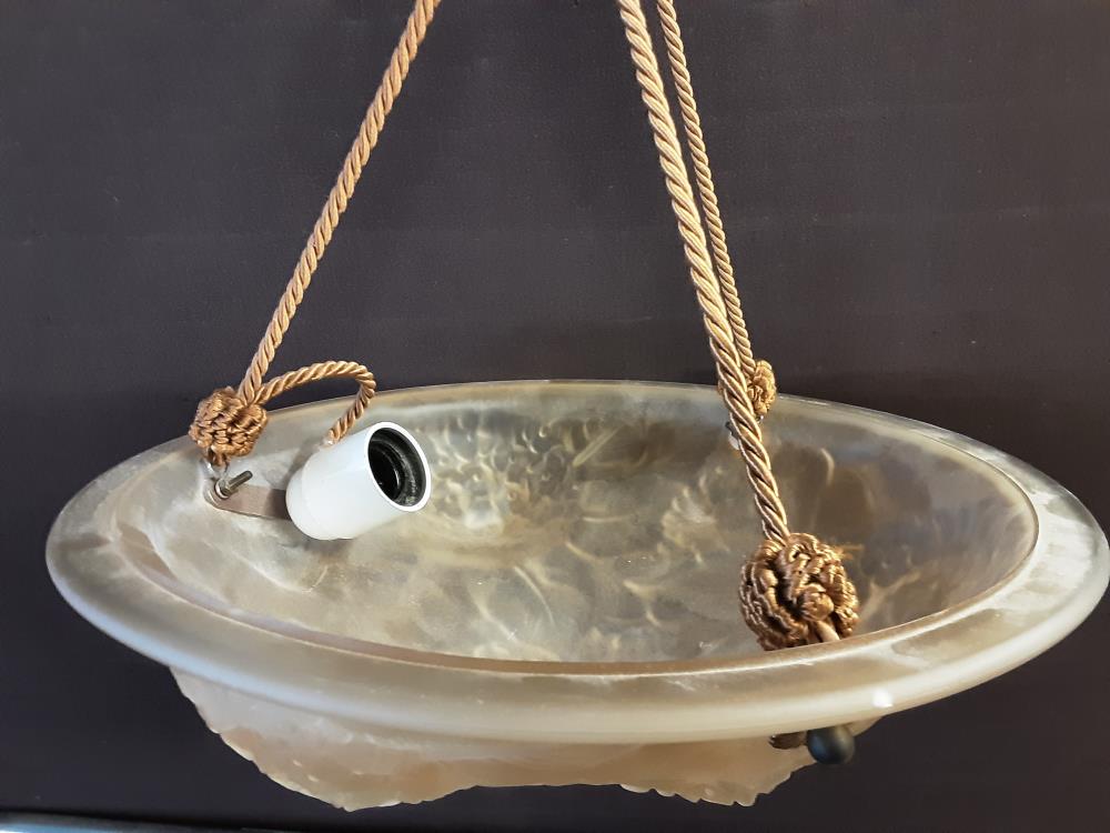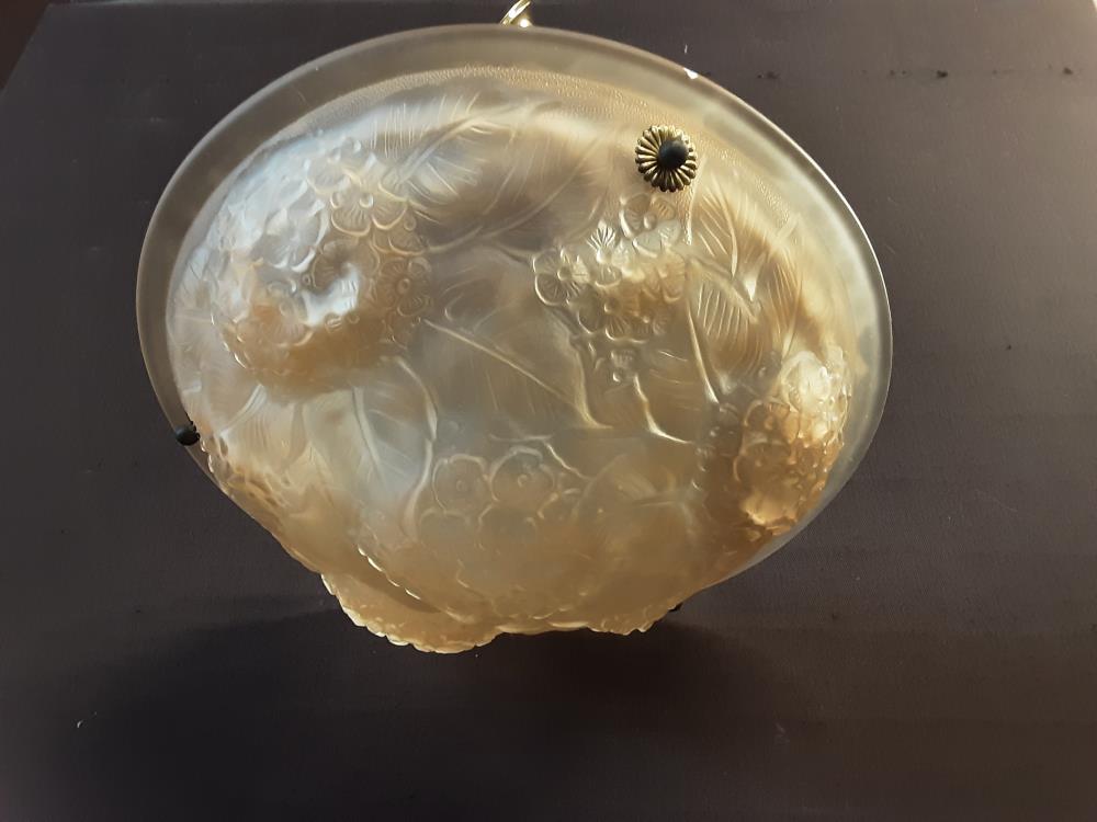 LUSTRE VERRE SOUFFLE A RELIEFS JAUNE PALE DIAM.35CM