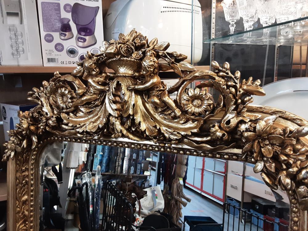 MIROIR BISEAUTE BAROQUE CADRE DORE ANGELOTS ROSACE
