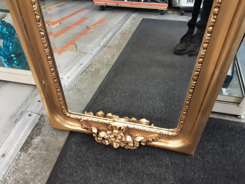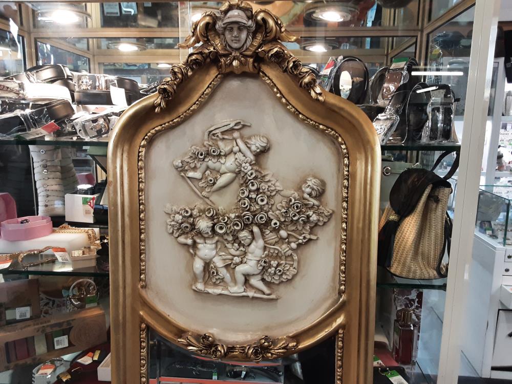 MIROIR LONG BAROQUE CADRE BOIS DORE ANGELOTS BLANCS RESINE EN RELIEF