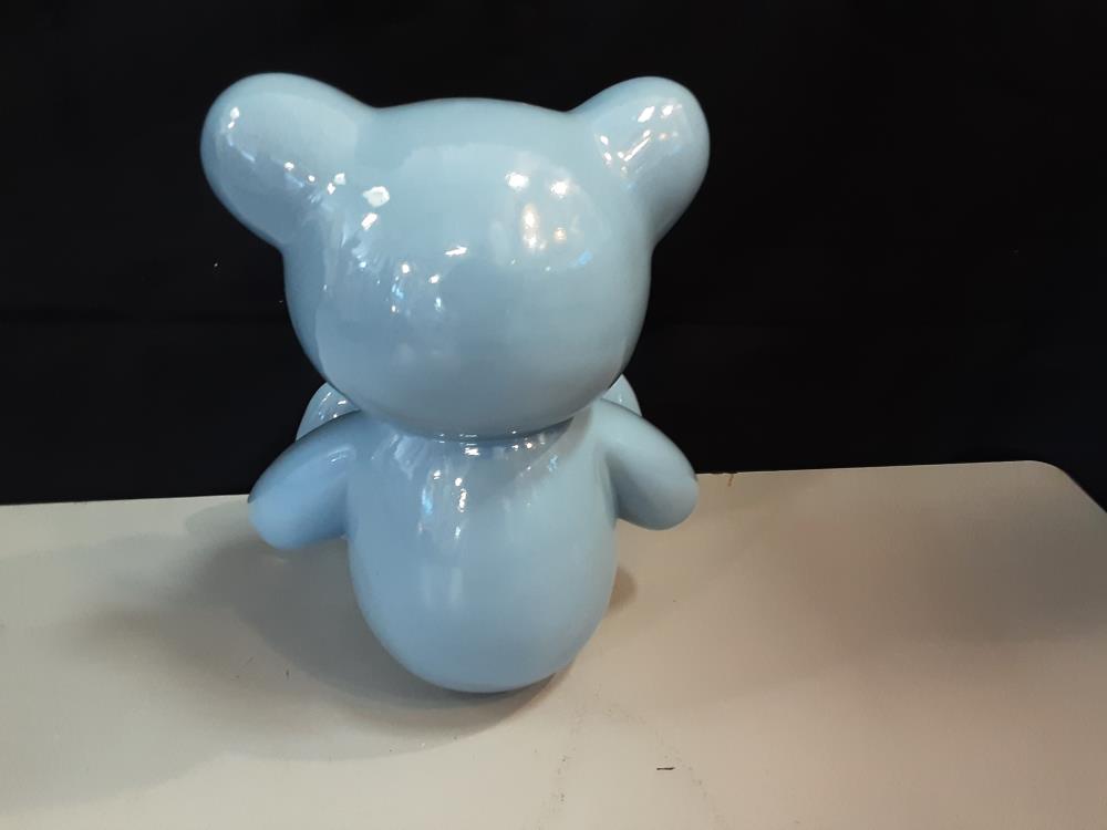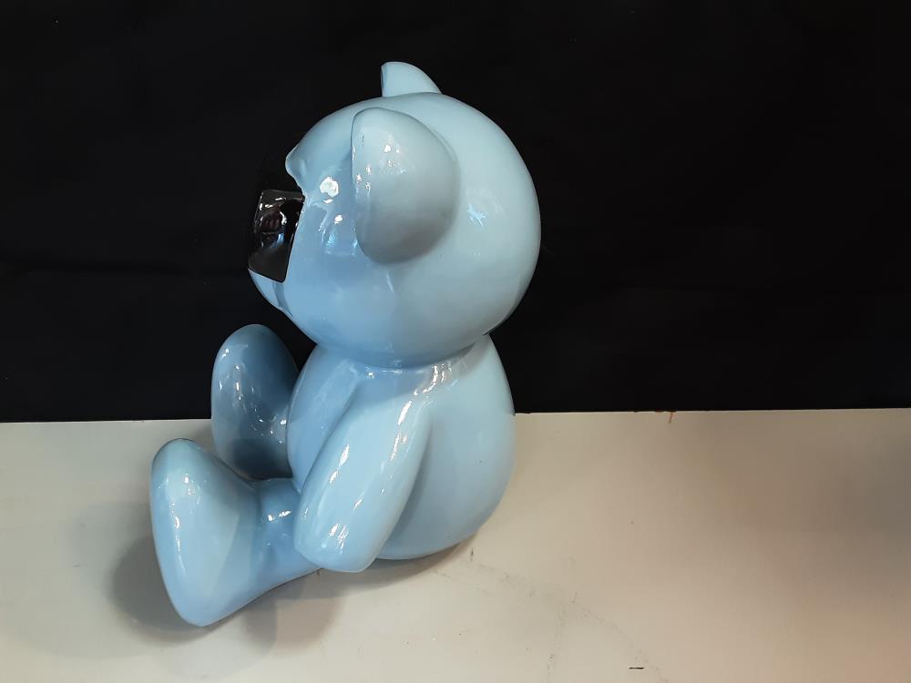 OURSON BLEU CIEL RESINE A LUNETTES NOIRES PM