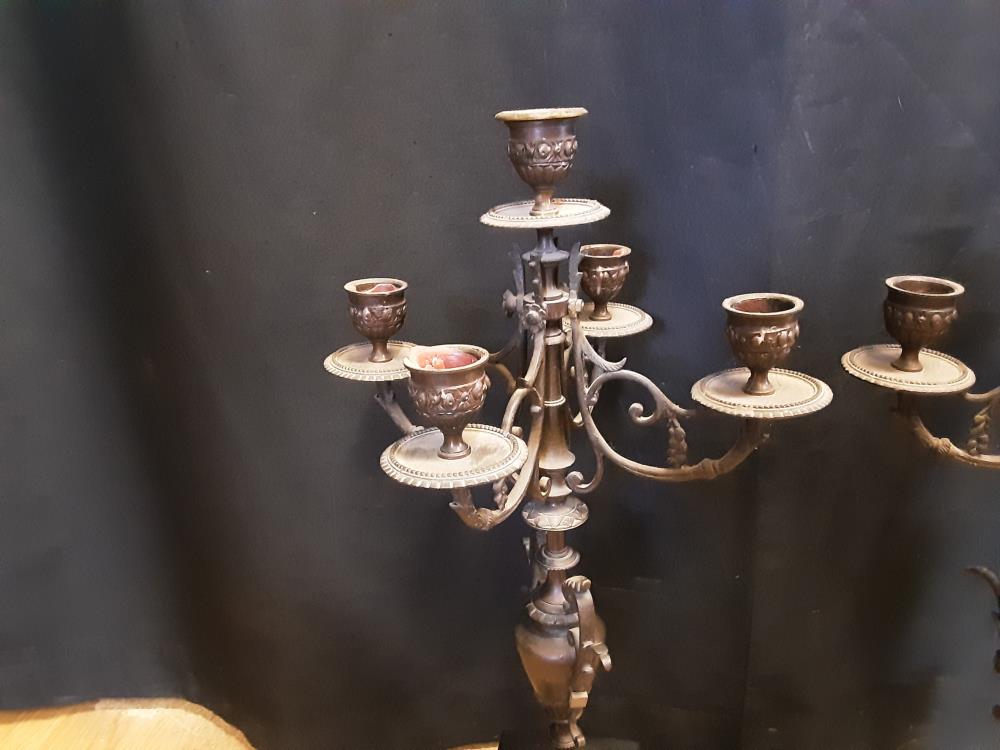 PAIRE CHANDELIERS EN BRONZE ET MARBRE NOIR
