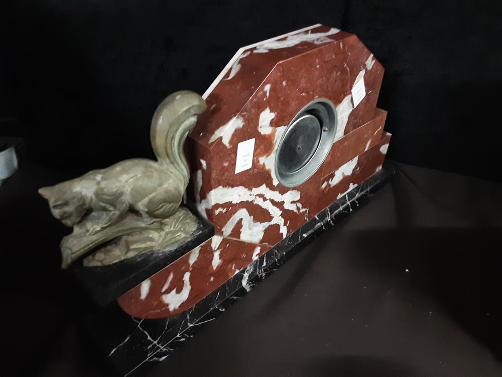 PENDULE EN MARBRE ECUREUIL VITRE HS - AVEC CLÉ