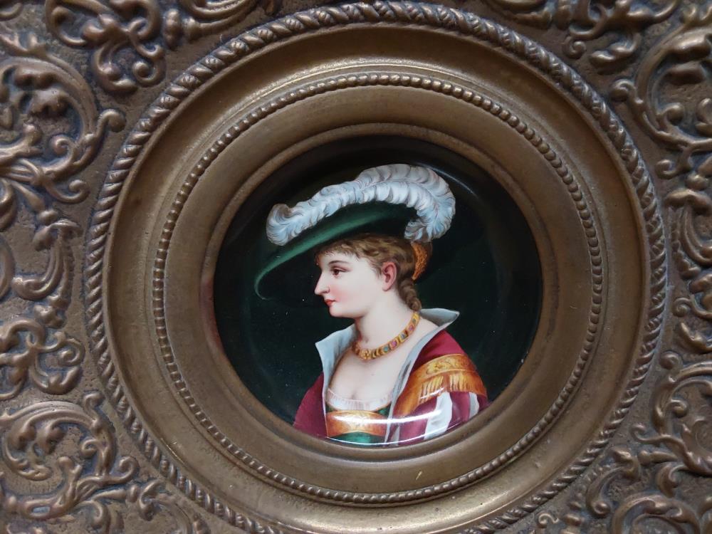 PLAT EN LAITON AVEC ASSIETTE PORCELAINE PEINTE A LA MAIN DIAM.40CM