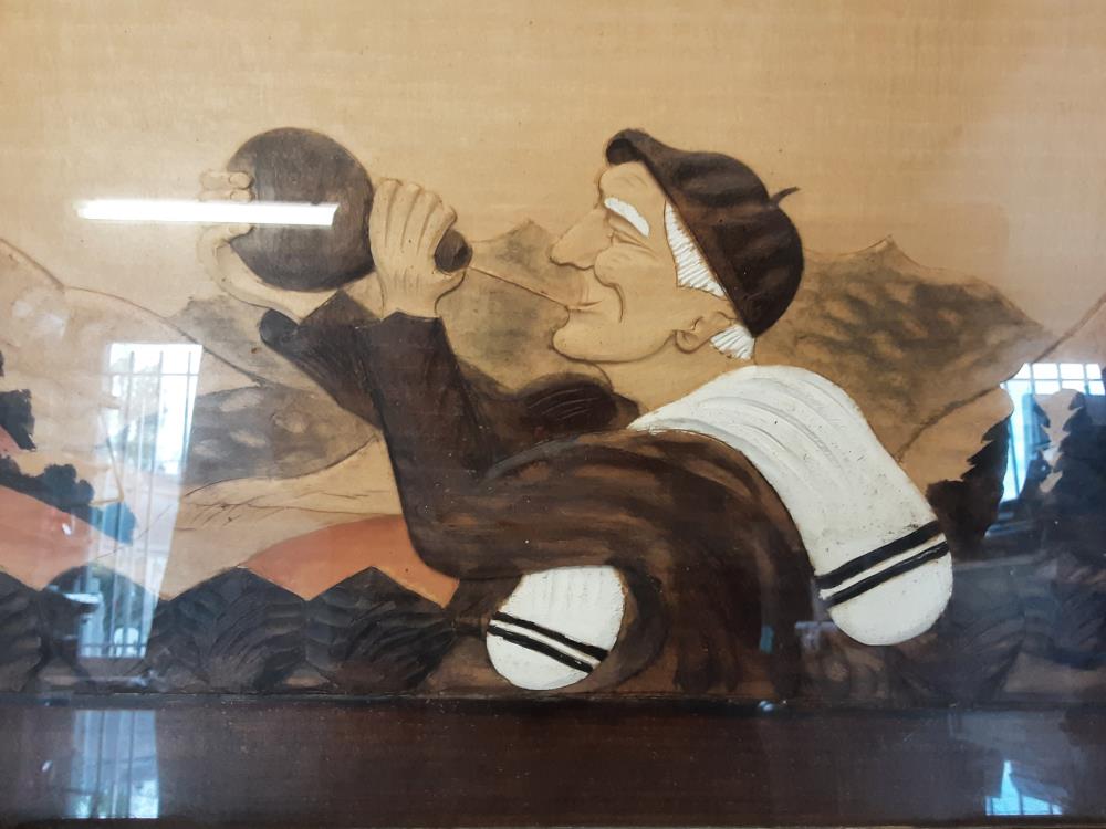 PLATEAU EN BOIS ANNEE 60-70 MOTIF EN RELIEF ET DESSUS VERRE