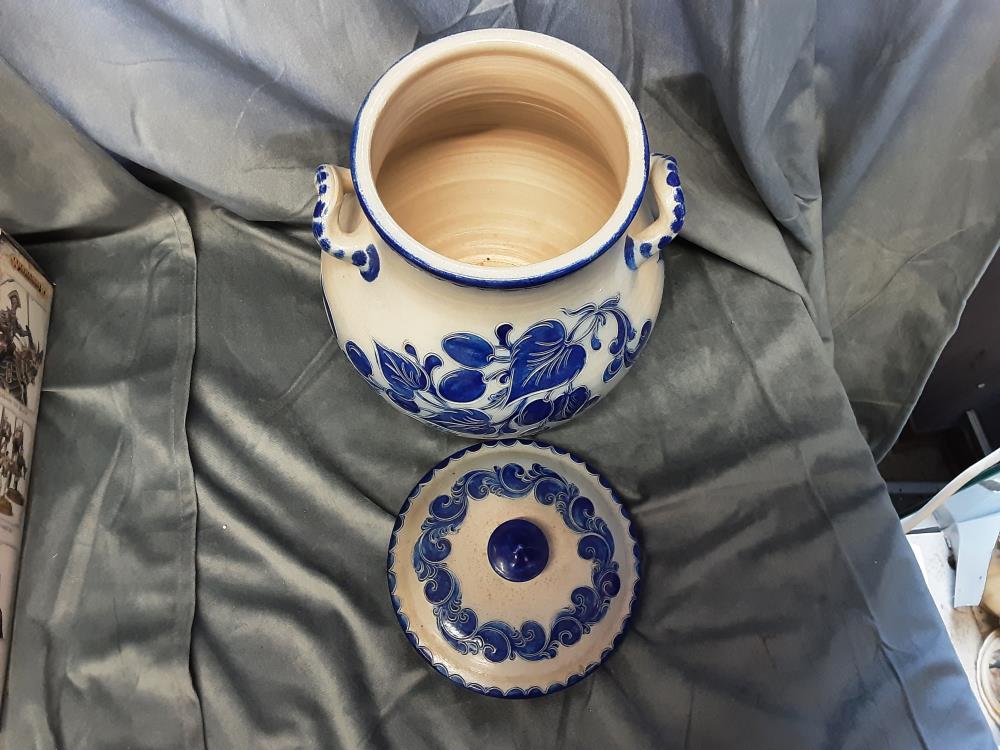 POTICHE AVEC COUVERCLE EN GRES BLEU