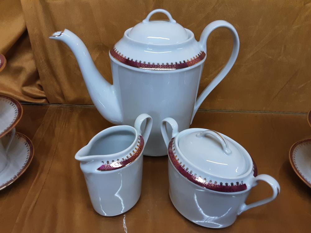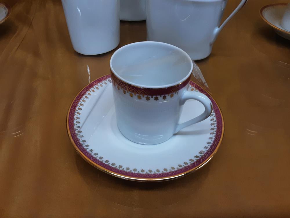 SERVICE A CAFE BLANC ET BORDURE ROSE